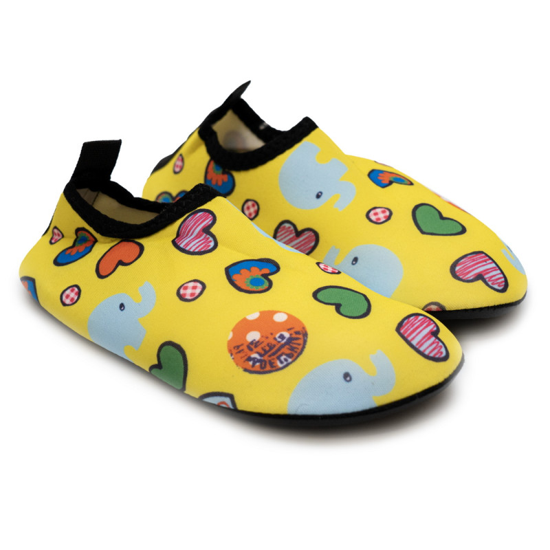 Дитячі аквашузи жовтого кольору, розмір 28-29 — легке та безпечне взуття для комфортних ігор на пляжі чи в аквапарку. Швидко висихають, легко вдягаються, надійно захищають ніжки від гострих камінців та гарячого піску. Ідеальний вибір для відпочинку біля води.