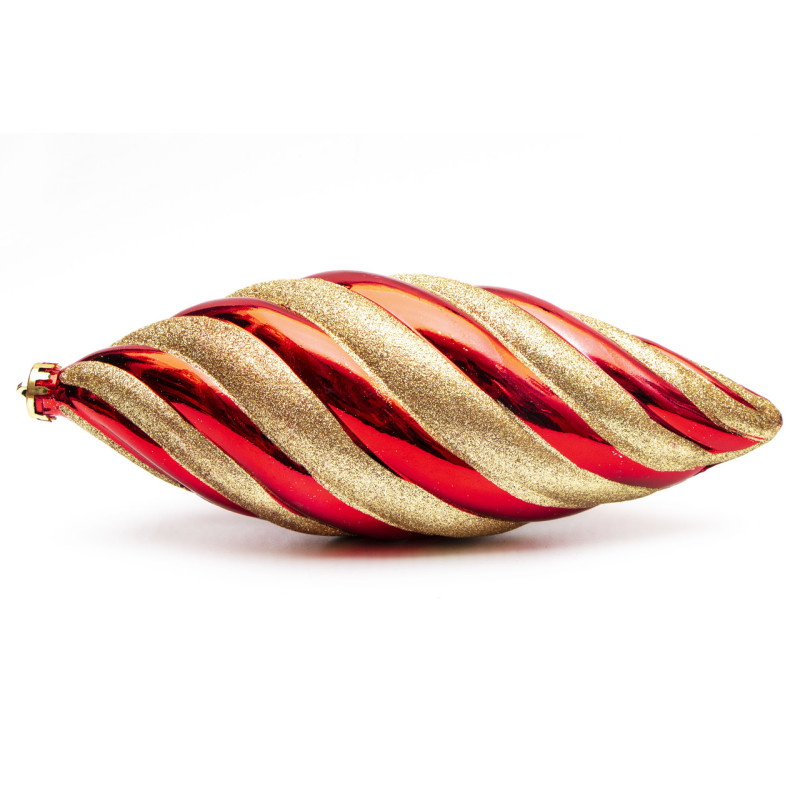 Велика ялинкова іграшка - бурулька, 30 см, червоний, золотистий, глянець, гліттер, пластик (891565)