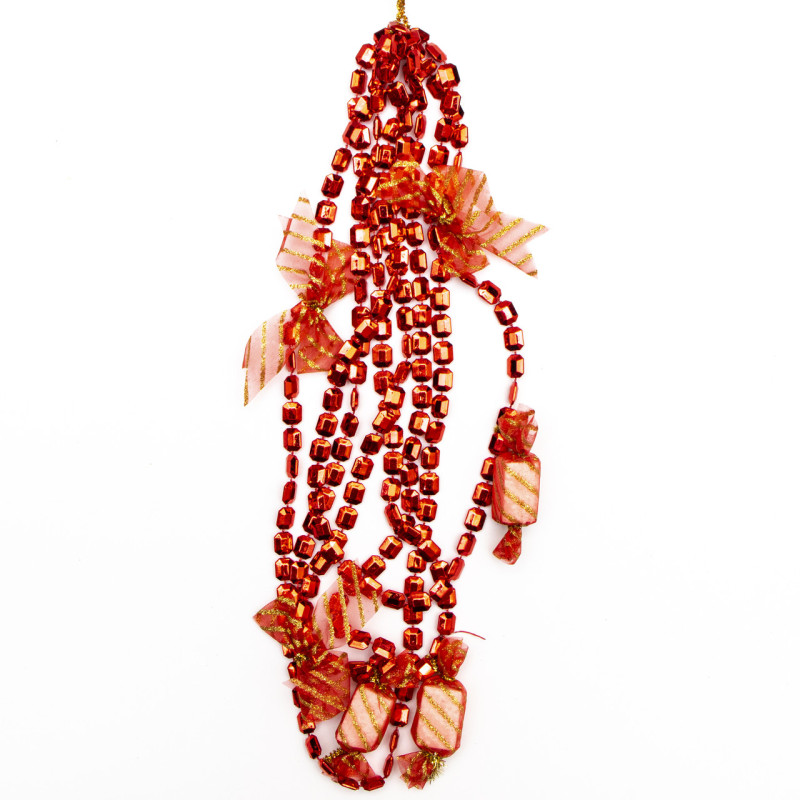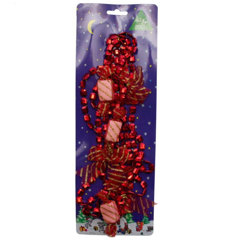 Намисто на ялинку з прикрасами, 2,7 м, червоний, пластик, текстиль (471157-3)