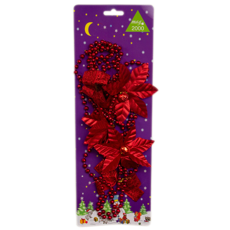 Намисто на ялинку з прикрасами у великі шари, 2,7 м, червоний, пластик (472123-13)