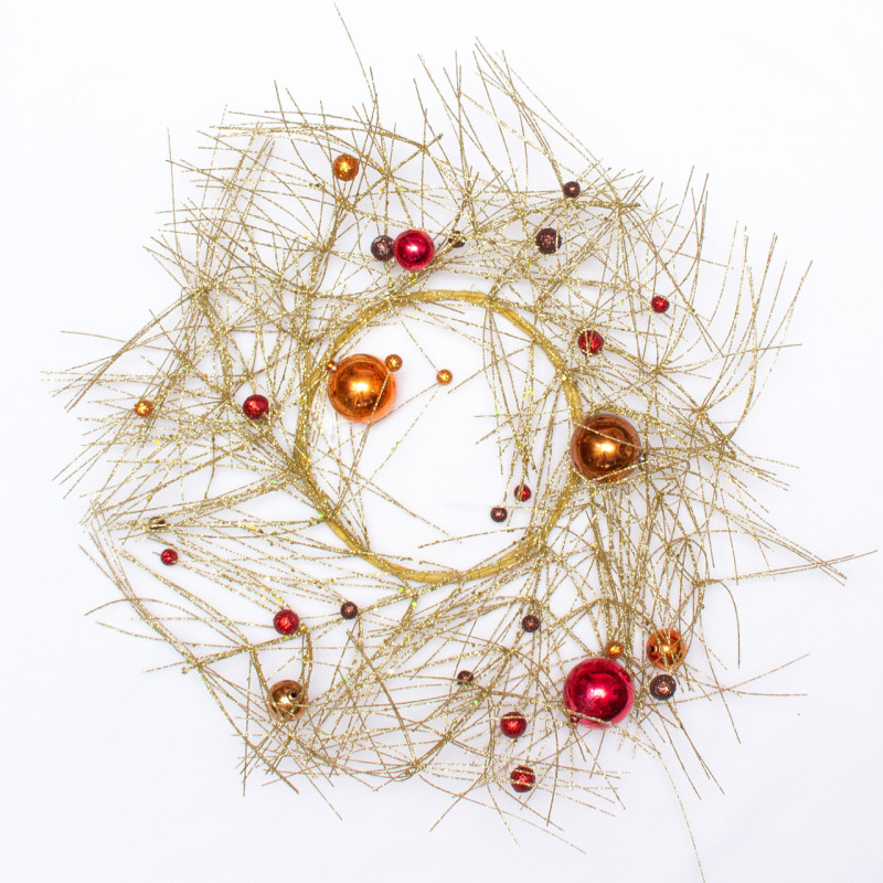 Декорація - вінок-павутинка з кулями, 50 см, золотиста, метал, пластик (770144-4)