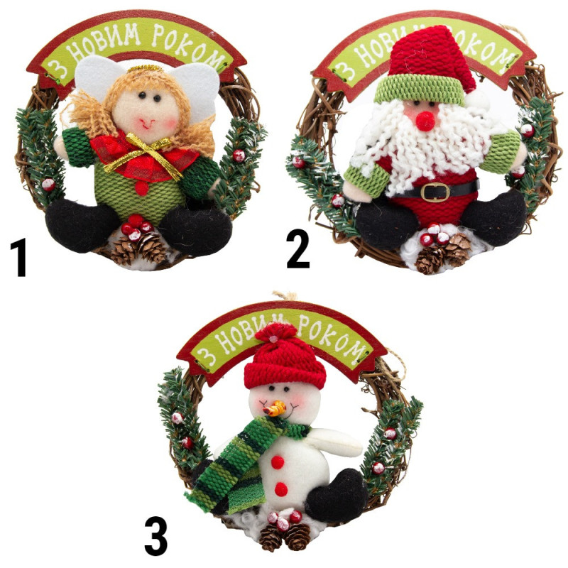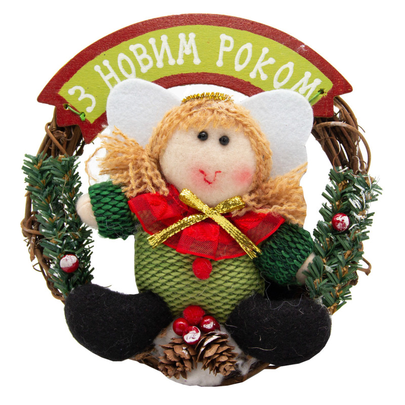 Декорація - вінок З Новим Роком, Янгол (180202-1)