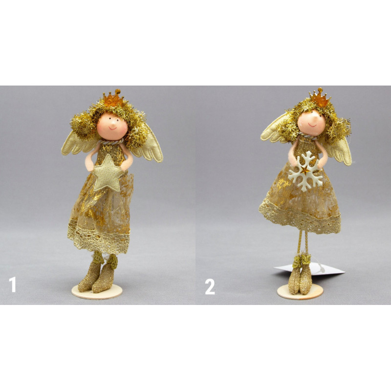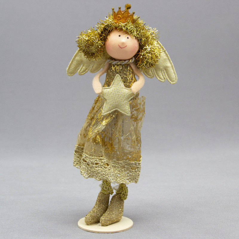 Декоративна фігурка - Янголятко із зіркою на підставці, 10 см, золотистий, текстиль, пластик (220075-1)