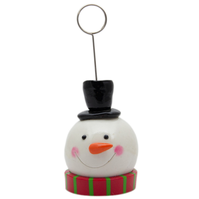Декоративна фігурка - тримач фотографій, Сніговик із чорним циліндром 11,5 см, білий, полірезин (001347-6)