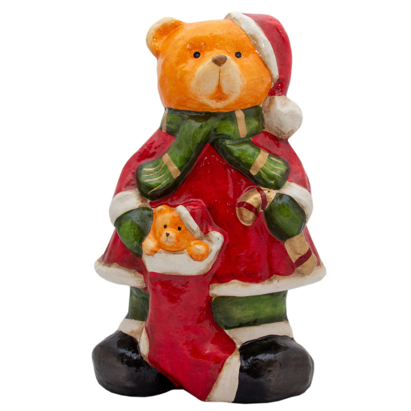 Декоративна фігурка - Ведмідь з ведмежам, 23x14,5x36,5 см, червоний з коричневим, пап'є-маше (013449)