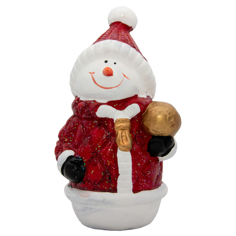 Декоративна фігурка - Сніговик, 7,6x6,3x13,5 см, червоний з білим, кераміка (022793)