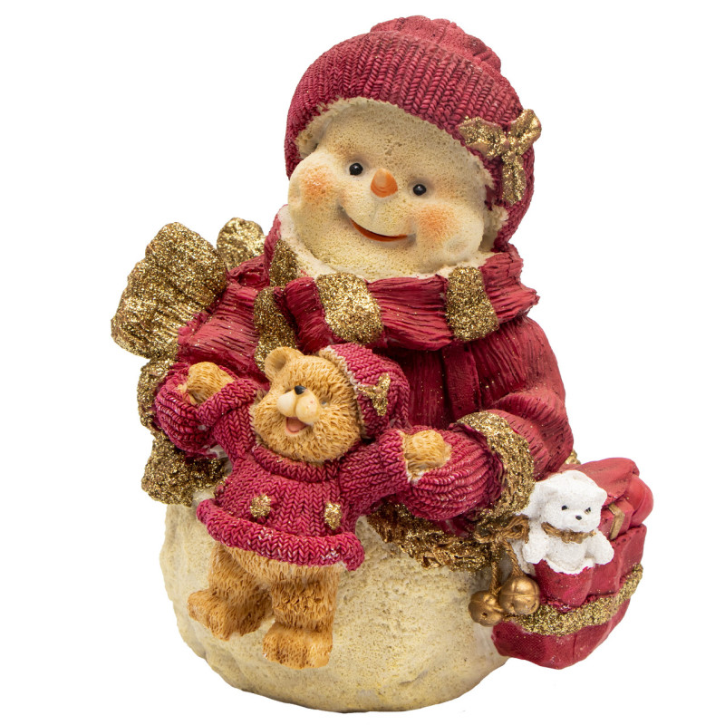 Декоративна фігурка - Сніговик та ведмідь, 20 см, червоний з коричневим, полістоун (950781)