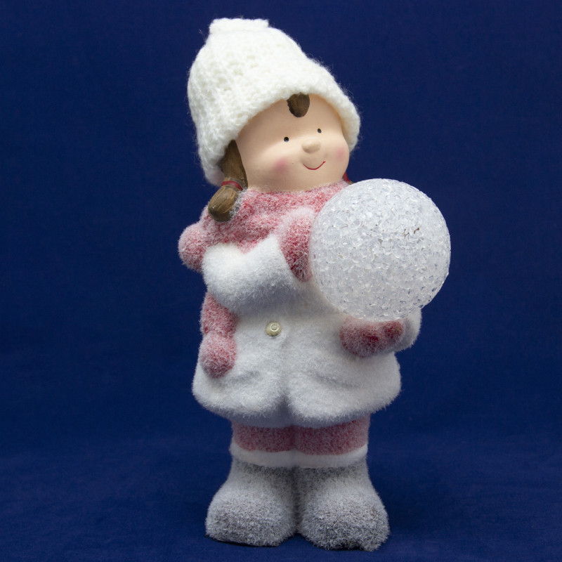 Декоративна фігурка - Дівчинка зі сніжкою, 12,5x11,5x24,5 см, білий з рожевим, магнезія (920180)