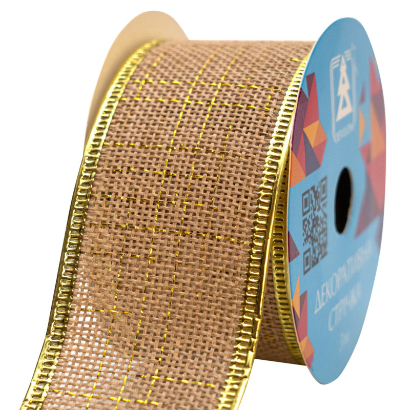 Декоративна прикраса - стрічка в рулоні, 3 м, 4 см, золотистий, поліестер (082666)