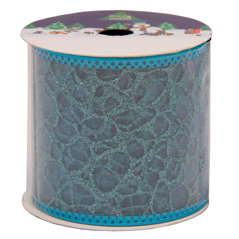 Декоративна прикраса - стрічка в рулоні Пінка, 3 м, 6,3 см, блакитний, органза (080037-7)