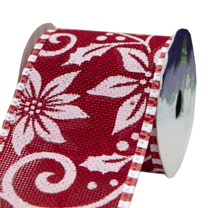 Декоративна прикраса - стрічка в рулоні в білі квіти, 3 м, 6,3 см, червоний, поліестер (080594-3)