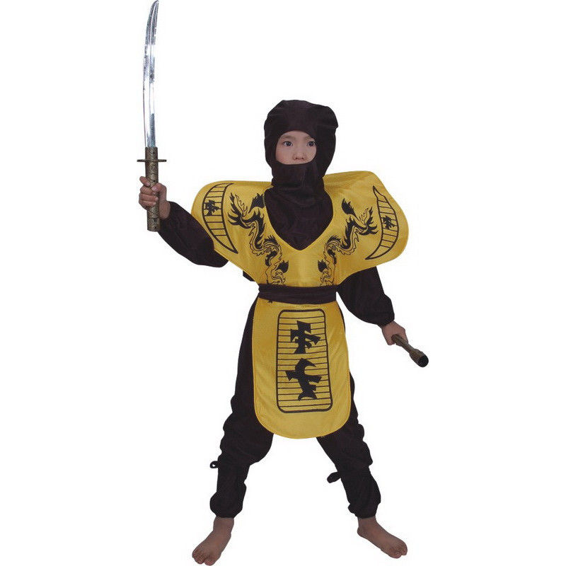 Дитячий карнавальний костюм ніндзя, 4 роки - 102 см, чорний, жовтий, поліестер (460489-1)