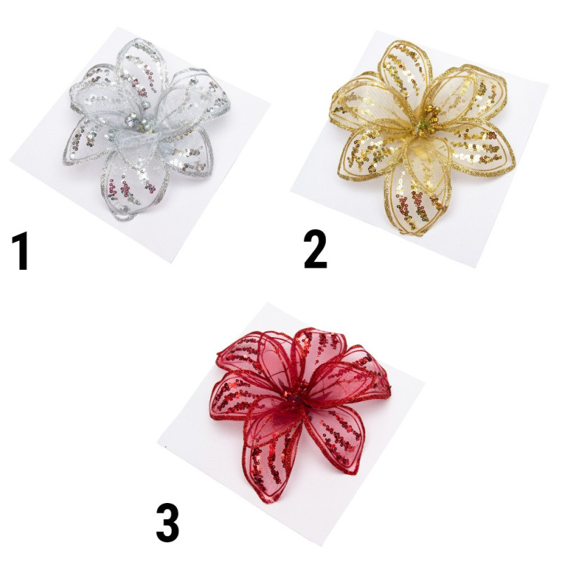 Ялинкова іграшка - Квітка з органзи на кліпсі, 20 см, золотистий, органза (780044-2)
