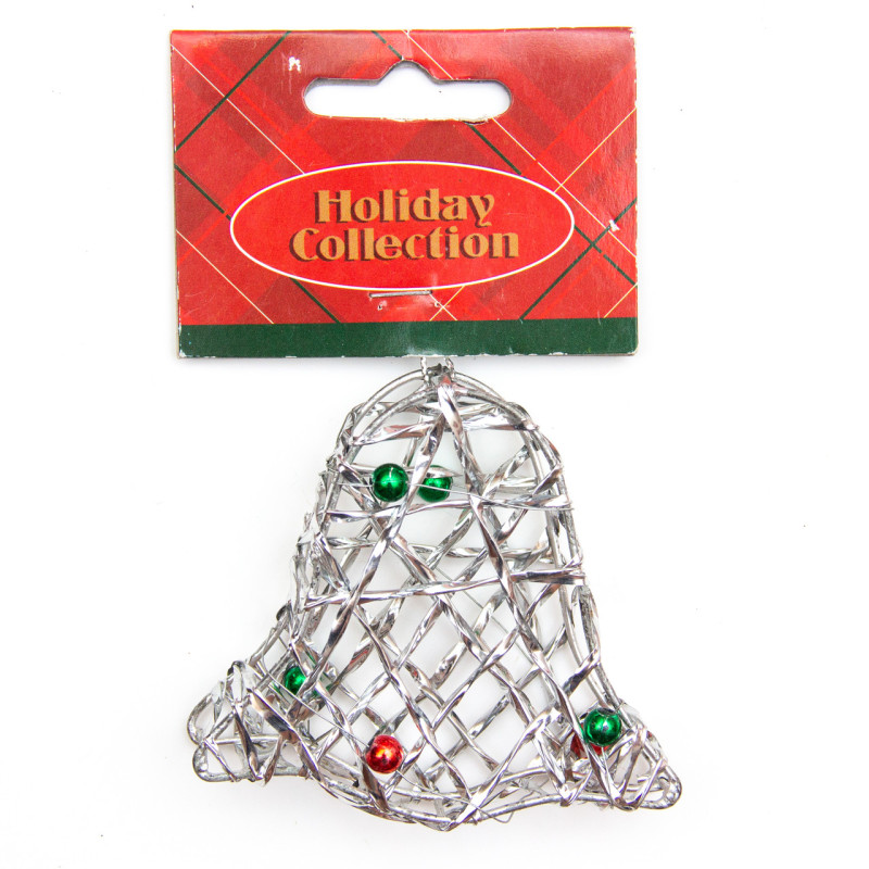 Ялинкова іграшка з дроту - Срібний дзвіночок, 7,6 см, сріблястий, метал, пластик (000685-8)