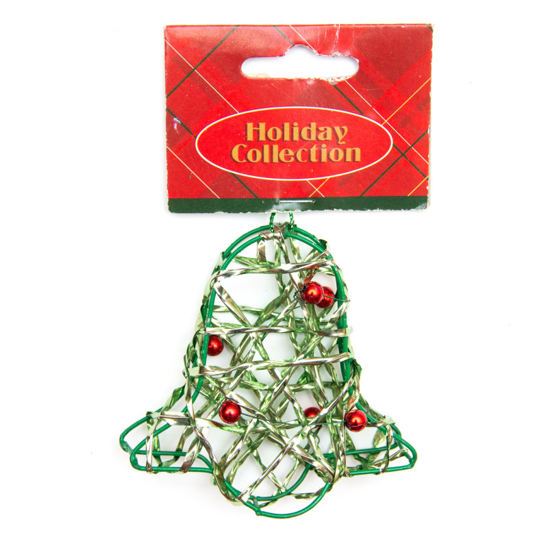 Ялинкова іграшка з дроту - Зелений дзвіночок, 7,6 см, зелений, метал, пластик (000685-11)