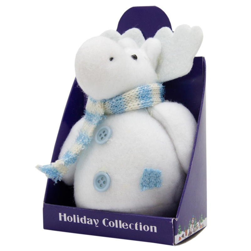 Ялинкова іграшка м'яка - Білий лось з блакитним шарфом, 14 см, білий, текстиль (000029-19)