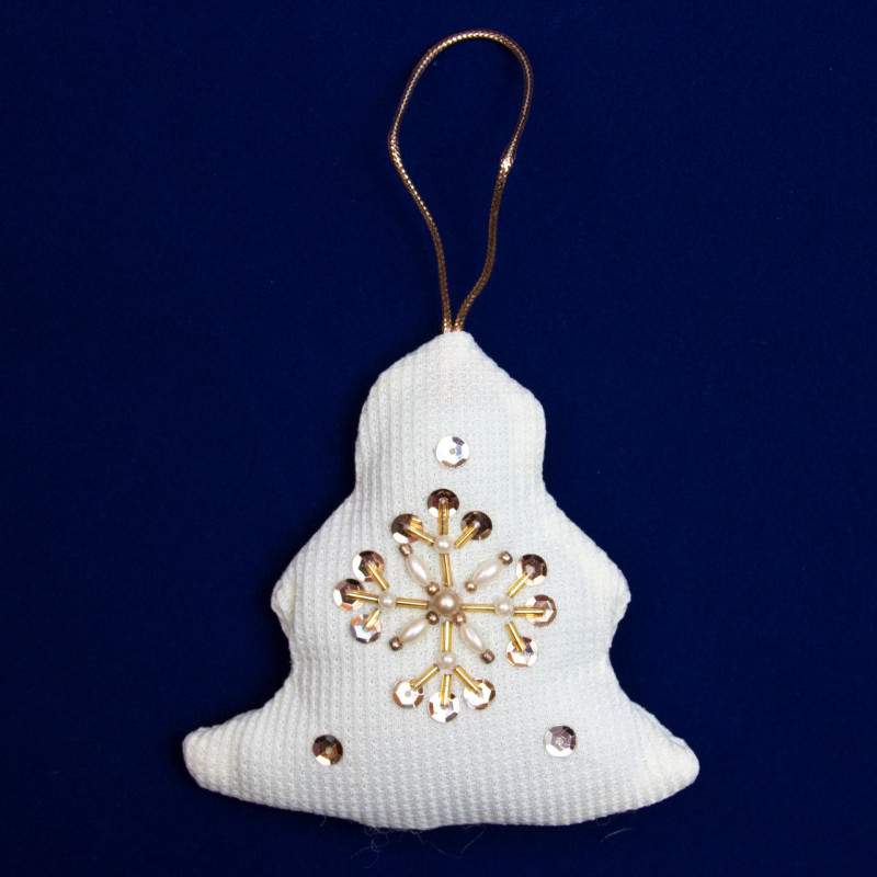 Ялинкова іграшка м'яка - Ялинка, 8 см, білий, текстиль з бісером (430086-4)
