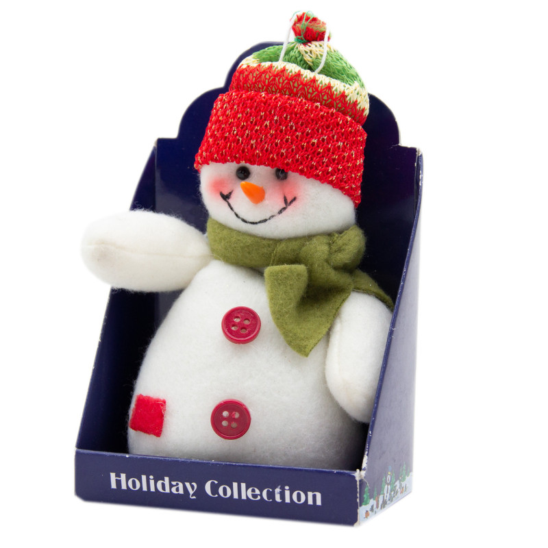 Ялинкова іграшка м'яка - Сніговик в червоній шапці, 9 см, білий, текстиль (000265-3)