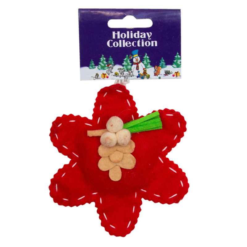 Ялинкова іграшка м'яка - Червона квітка, 11 см, червоний, текстиль (000401-3)