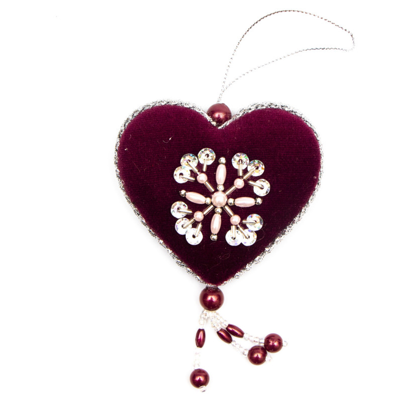 Ялинкова іграшка м'яка - набір - 3 шт, 8 см, червоний, текстиль з бісером (430178)