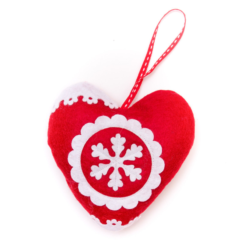 Ялинкова іграшка м'яка - Серце, 12 см, червоний з білим, текстиль (430710-2)