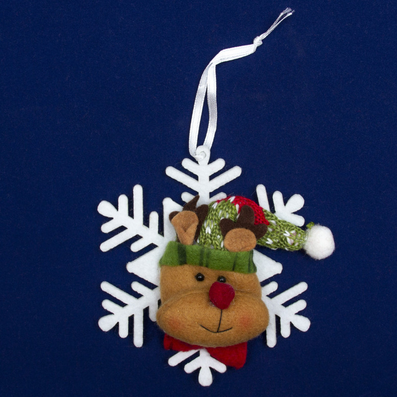 Ялинкова іграшка м'яка - Сніжинки - Олень, 12 см, білий з коричневим, текстиль (430451-4)