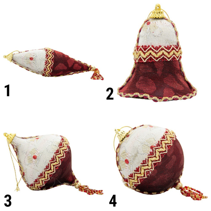Ялинкова іграшка м'яка - Дзига, 10 см, червоний, текстиль з бісером (430246-3)
