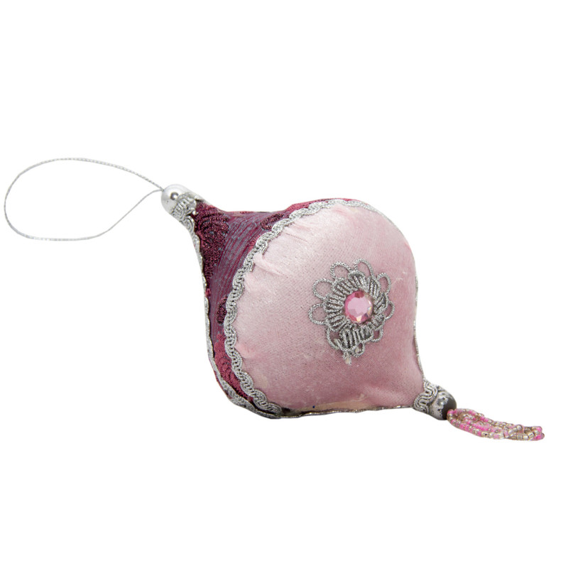 Ялинкова іграшка м'яка - Дзига, 10 см, рожевий з бордовим, текстиль з бісером (430222-2)
