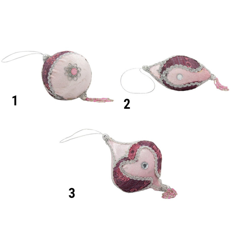 Ялинкова іграшка м'яка - Дзига, 10 см, рожевий з бордовим, текстиль з бісером (430239-3)