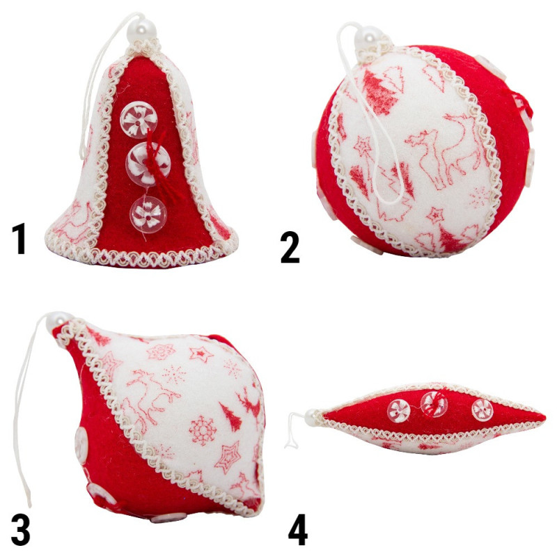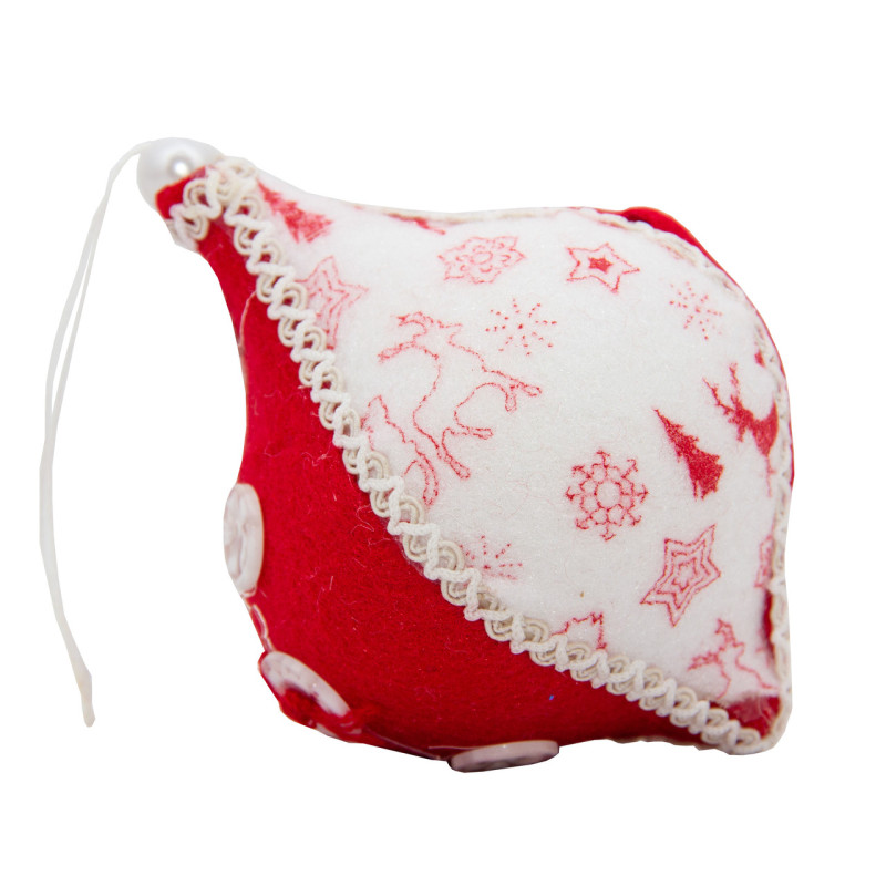 Ялинкова іграшка м'яка - Дзига, 13 см, червоний з білим, текстиль (430017-3)