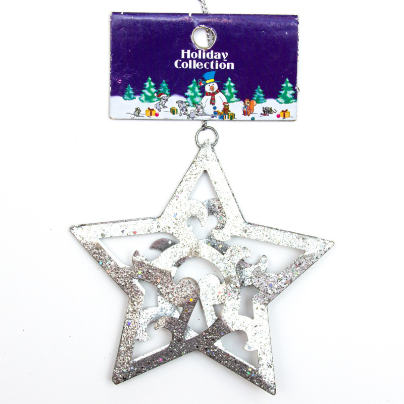 Ялинкова іграшка на підвісці - Срібна зірка, 10 см, сріблястий, метал (000722-6)