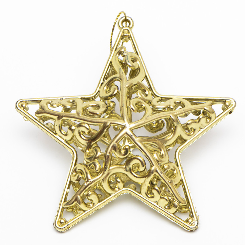 Ялинкова іграшка на підвісці - Зірка, 8,4 см, золотистий, пластик, глянець (000746-2)