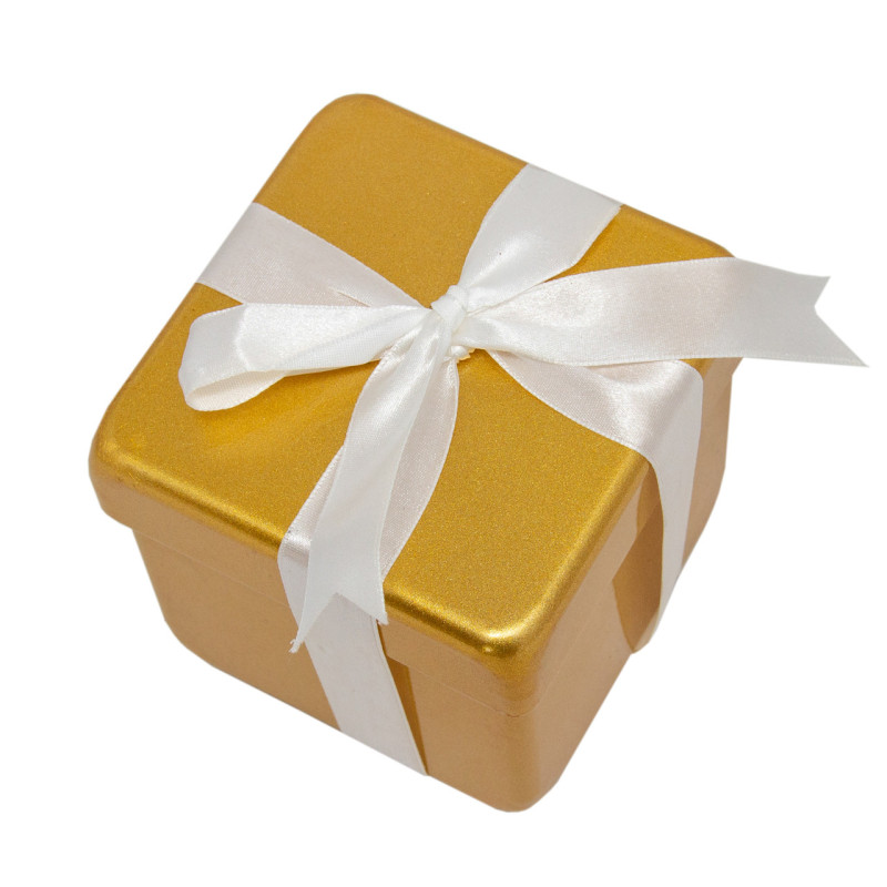 Ялинкова іграшка - Подарунок з бантом білим, 10 см, золотистий, пластик (110230-2)