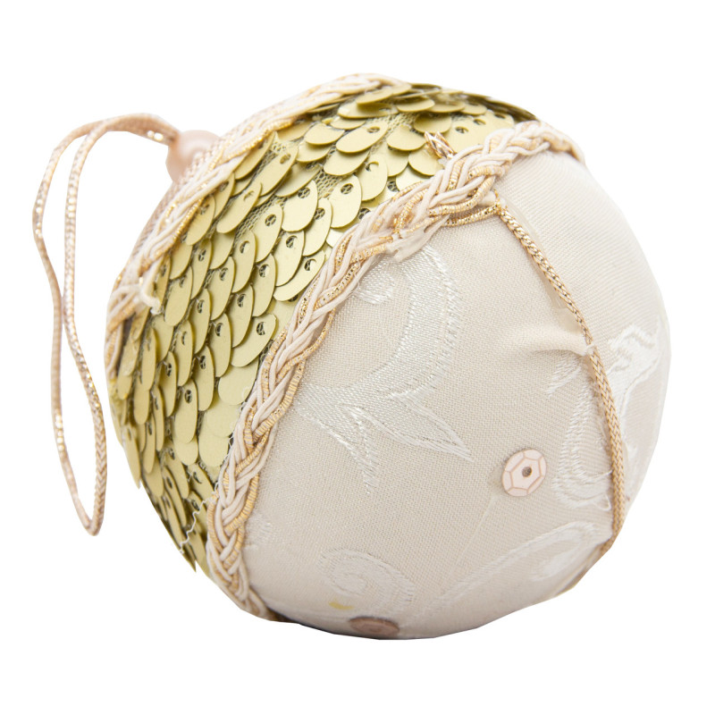 Ялинкова іграшка - куля з тканини з блискітками, D 10 см, золотиста, текстиль (430147-4)