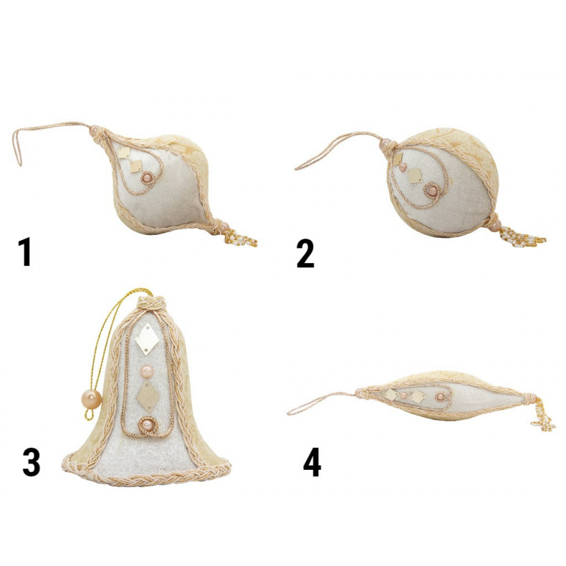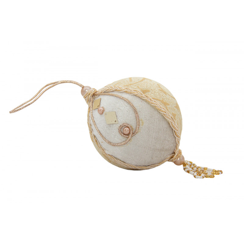 Ялинкова іграшка - куля з тканини вишита бісером, D 10 см, золотиста, срібляста, текстиль (430215-2)