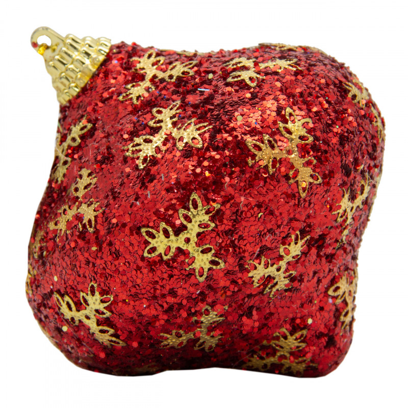 Ялинкова іграшка у формі цибулини, 9 см, червоний із золотистим, пінопласт, пластик (661480-4)