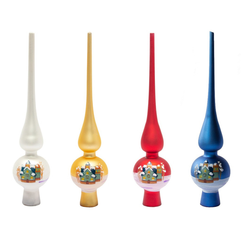 Ялинкова прикраса - верхівка на ялинку з розписом, h-28 см, d-6 см, синій, матовий, скло (390496-4)