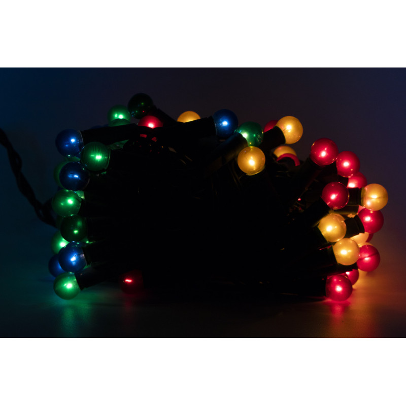 Гірлянда з лампочками розжарювання - перлинні кульки, 10 м, 100 л, 8 режимів, різнокольоровий, IP20 (050642)