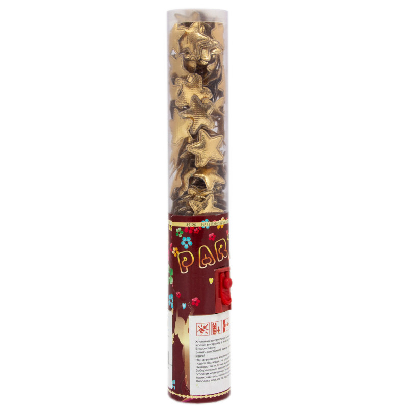 Хлопавка пневматична, 25 см, золотисті зірочки з тканини (400645-1)