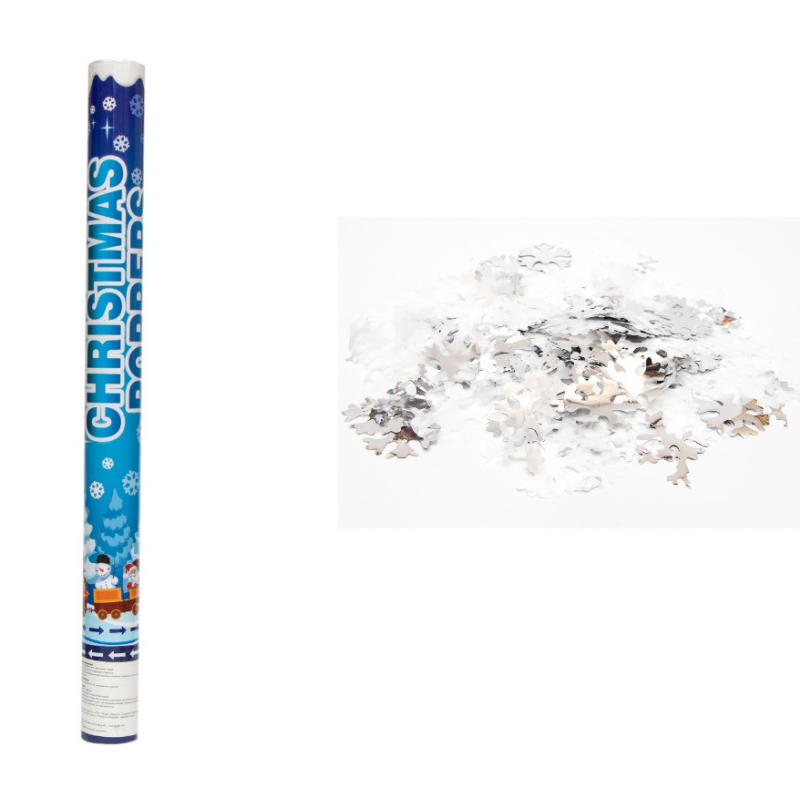 Хлопавка пневматична "CHRISTMAS POPPERS", 78,5 см, білі та сріблясті сніжинки з фольги (401086-1)