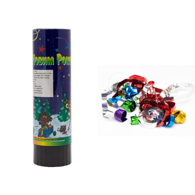 • Наповнювач: конфеті - різнокольорові смужки з фольги.