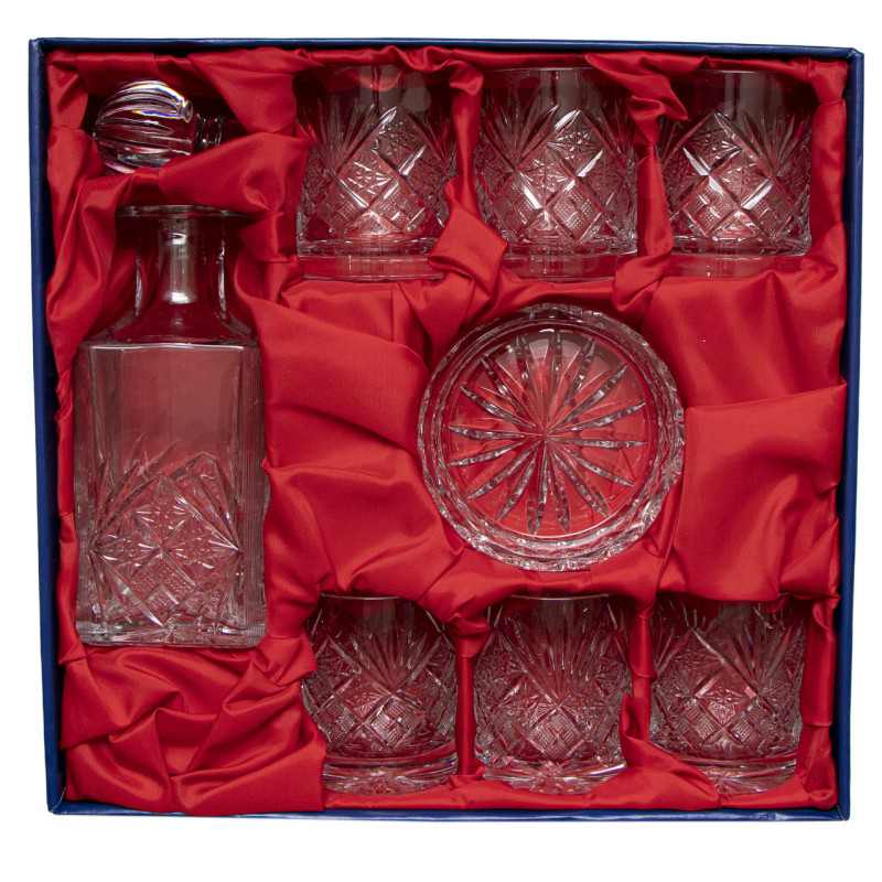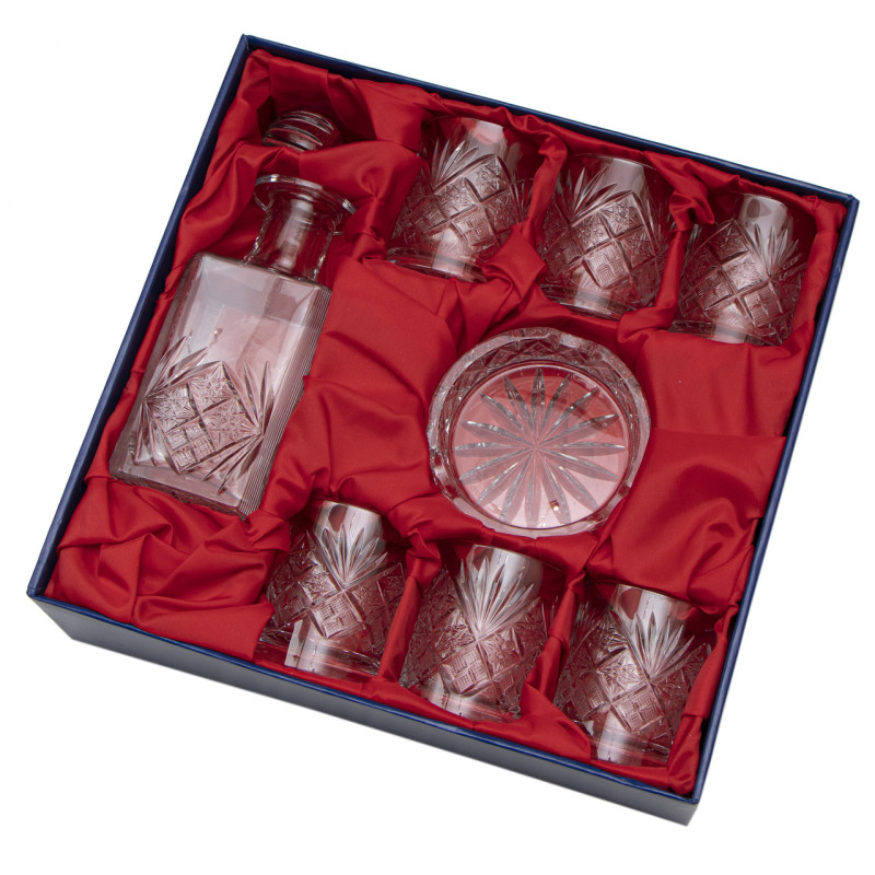 Благородним напоям дуже йдуть благородна атмосфера і краса. Цим варто насолоджуватися, тримаючи в руках кришталь. В даний сет входить 1 графин, 6 склянок і 1 попільничка. Це саме той набір, який стимулює появу нових ідей або цікавих дискусій.