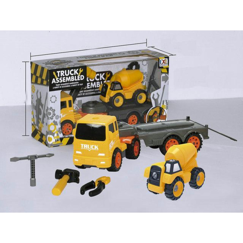 Ігровий набір - конструктор трейлер та бетонозмішувач, 45x13,5x24,5 см, пластик (CXL200-29B)