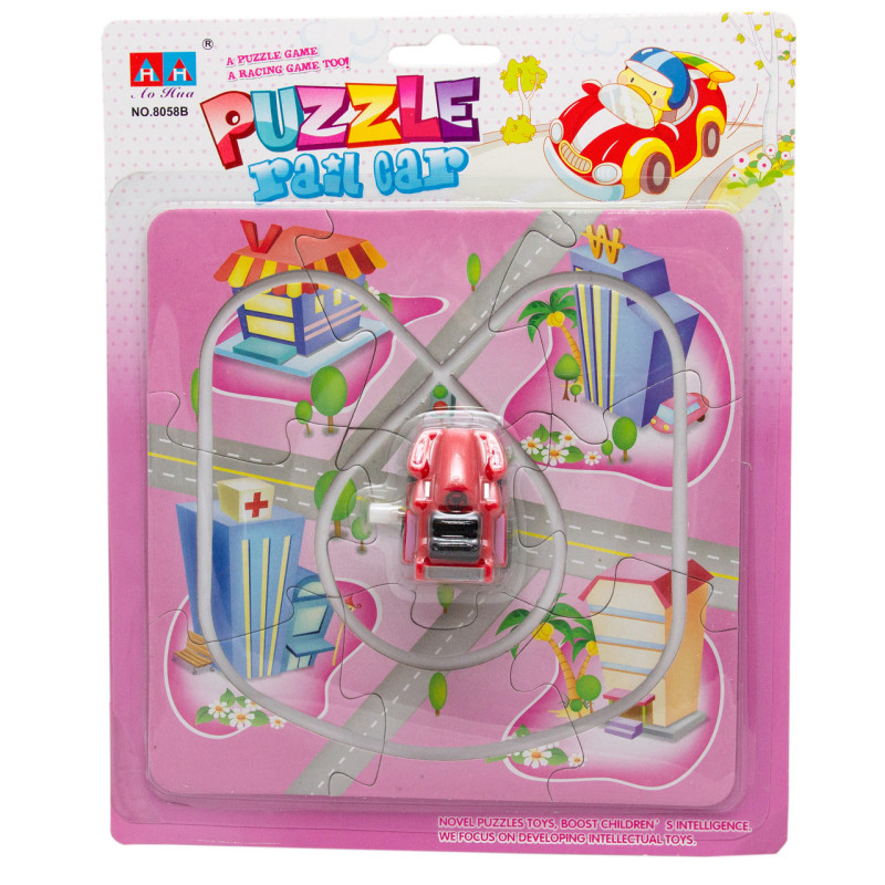 Іграшка заводна - рожевий трек-пазл Aohua з машинкою 4x3x2,5 см, 17x17 см, червоний, пластик (8058B-5-6)