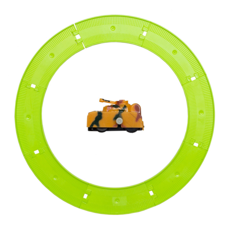 Іграшка заводна - танк 5,5 см з зеленим треком 16,3x16,3 см, помаранчевий, пластик (8054A-3-2)