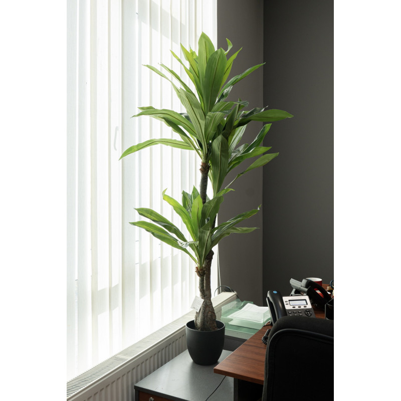 Штучне дерево виконано з пластика. За допомогою даної рослини можливо легко прикрасити будь-який куточок у будинку або на роботі для пожвавлення інтер'єру. Штучні рослини допомагають озеленити вибране місце без труднощів - поливати не треба, пересаджувати не потрібно, добрива купувати не потрібно. Тільки при плановому прибиранні протерти ганчіркою з водою від пилу. Зручно, чи не так?