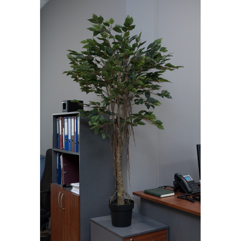 Штучне дерево виконано з пластика. За допомогою даної рослини можливо легко прикрасити будь-який куточок у будинку або на роботі для пожвавлення інтер'єру. Штучні рослини допомагають озеленити вибране місце без труднощів - поливати не треба, пересаджувати не потрібно, добрива купувати не потрібно. Тільки при плановому прибиранні протерти ганчіркою з водою від пилу. Зручно, чи не так?
