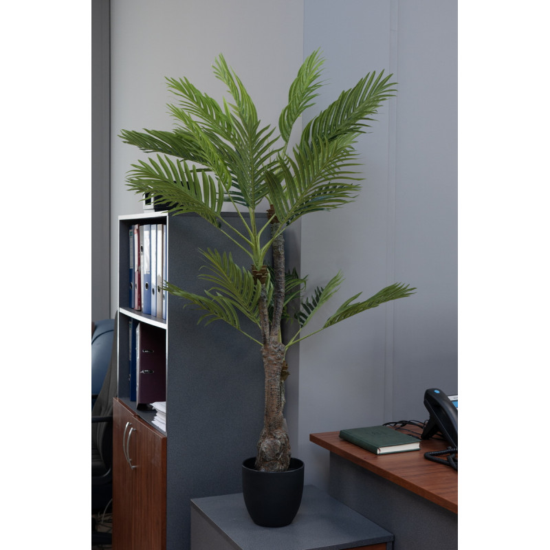 Штучне дерево виконано з пластика. За допомогою даної рослини можливо легко прикрасити будь-який куточок у будинку або на роботі для пожвавлення інтер'єру. Штучні рослини допомагають озеленити вибране місце без труднощів - поливати не треба, пересаджувати не потрібно, добрива купувати не потрібно. Тільки при плановому прибиранні протерти ганчіркою з водою від пилу. Зручно, чи не так?