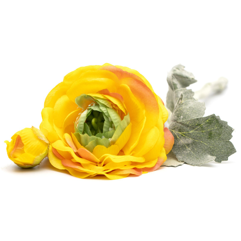На гілочці 2 квітки: один з розкритим бутоном, один з закритим. Також, весь виріб покрито шорсткою тканиною, що надає більш натуральний ефект квітки.