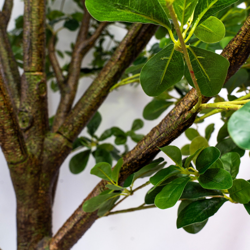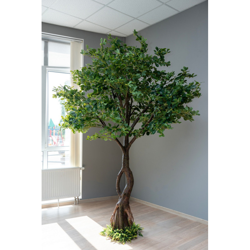 Штучне дерево виконано з пластика. За допомогою даної рослини можливо легко прикрасити будь-який куточок у будинку або на роботі для пожвавлення інтер'єру. Штучні рослини допомагають озеленити вибране місце без труднощів - поливати не треба, пересаджувати не потрібно, добрива купувати не потрібно. Тільки при плановому прибиранні протерти ганчіркою з водою від пилу. Зручно, чи не так?